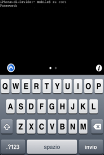 | 3. Per prendere il controllo dell’iPhone occorre autenticarsi scrivendo il comando ‘su root‘, invio |