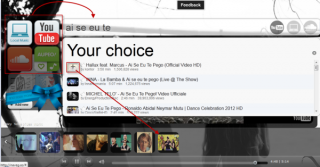 | 2. Appena abbiamo trovata la canzone desiderata, possiamo aggiungerla alla playlist (riquadro inferiore) cliccando sul simbolo “+” e continuare la ricerca di altre canzoni. La playlist può essere salvata per essere riprotta anche successivamente, basta cliccare l’iconcina in basso a destra “save playlist” e dargli un nome. | ||