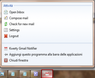 | 3. Cliccando con il tasto destro del mouse sull’icone del programma, si apre una finestra nella quale vengono visualizzate diverse opzioni: apri posta in arrivo, scrivi nuova email , cerca email ora, impostazioni e logout. |